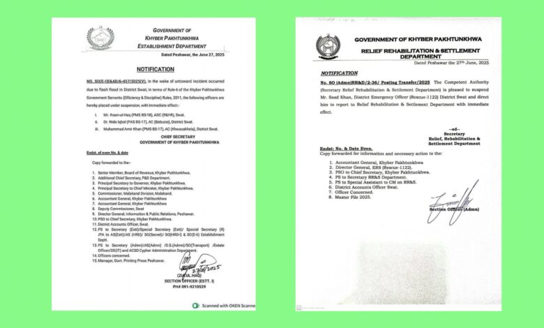 سوات: سانحہ سوات پر کارروائی، ناقص کارکردگی پر متعدد افسران معطل