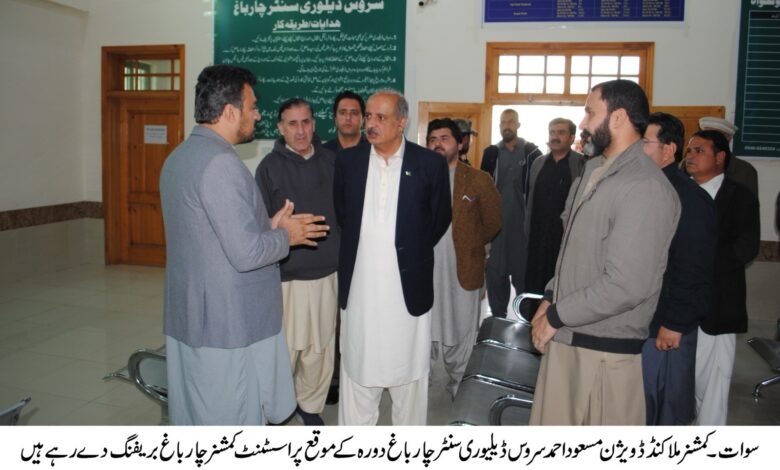 سوات: وزیر اعلیٰ خیبر پختونخوا اور چیف سیکرٹری خیبر پختونخوا کے گُڈ گورننس روڈ میپ کے تحت کمشنر ملاکنڈ ڈویژن مسعود احمد نے ضلع سوات کی مختلف تحصیلوں چارباغ، خوازہ خیلہ، بحرین اور مٹہ میں قائم سروس ڈیلیوری سنٹرز، تحصیل کمپلیکسز اور پولیس اسٹیشن چارباغ کا دورہ کیا۔